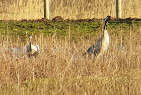 With the afternoons still short there was not a long vigil at Wicken before Harriers started to arrive to roost 3 male and 2 ringtail Hen Harriers the highlight, including a male who appeared to have taken to a gloomy tree roost in the hastening gale.