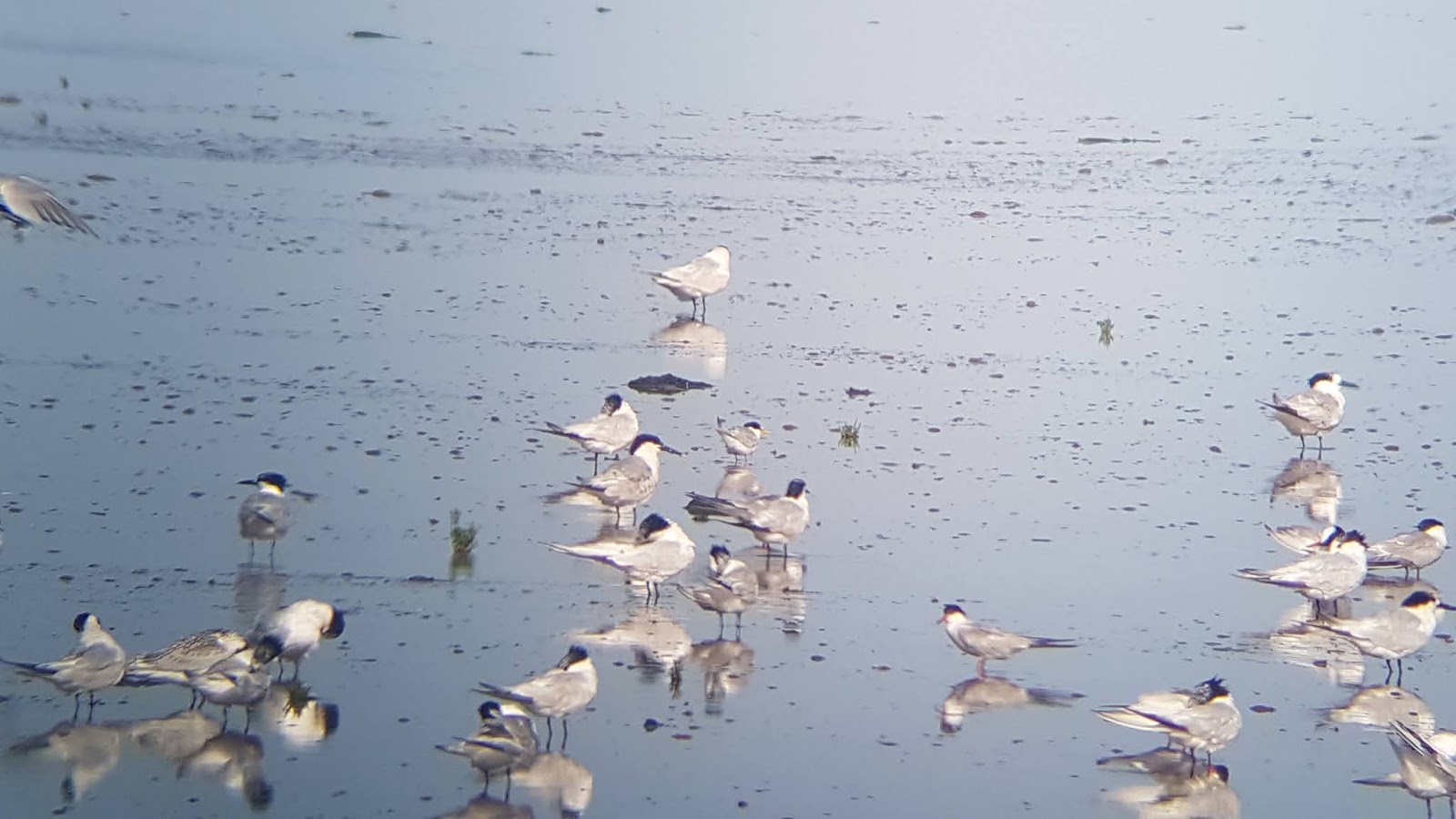 I had a a little recuperative snooze on the bank before heading back to the car. The tide had risen and I was surprised that the Caspian Tern hadn't returned. An old boy put us onto a fine adult Med Gull amongst the roosting gulls, as if from nowhere the Caspian Tern appeared, front of the throng, affording excellent views. Of course, busy day, the phone had 2% battery - too little to take pics or video. Ben was firing away though so hopefully will have some nice pics.